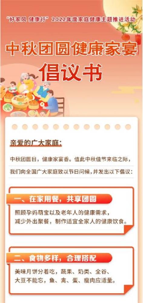好家風(fēng) 健康行——七部門聯(lián)合發(fā)布中秋團(tuán)圓健康家宴倡議書