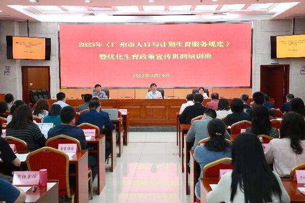 ??新修訂的《廣州市人口與計劃生育服務規(guī)定》(以下簡稱《規(guī)定》)自2023年3月1日起施行。為做好《規(guī)定》的解讀,加強人口形勢國情國策教育,營造良好生育支持氛圍,市衛(wèi)生健康委于3月24日組織了培訓,邀請廣東省人口發(fā)展研究院、華南師范大學和中山大學有關專家解讀人口政策、研判人口形勢,對實施三孩生育政策及配套支持措施進行宣貫培訓,同時部署全市2023年人口與計劃生育重點工作。市直各部門、各區(qū)衛(wèi)生健康局、委直屬單位、廣州醫(yī)科大學附屬醫(yī)院現(xiàn)場參加,各街(鎮(zhèn))、村(居)線上線下參加。