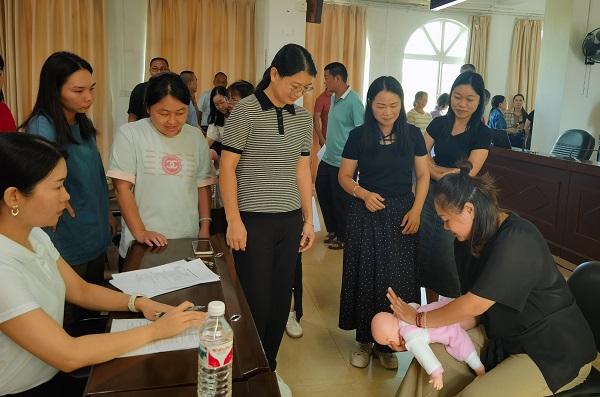 培訓(xùn)還邀請了從化區(qū)江埔街社區(qū)衛(wèi)生服務(wù)中心胡俊斌副主任醫(yī)師現(xiàn)場指導(dǎo)氣道異物梗阻海姆立克急救操作技能。培訓(xùn)現(xiàn)場學(xué)習(xí)氛圍濃厚,生動、有趣的教學(xué)讓學(xué)員們熱情高漲,積極參與操作技能練習(xí)。培訓(xùn)結(jié)束前對每位學(xué)員進(jìn)行了技能操作考核,合格率100%。