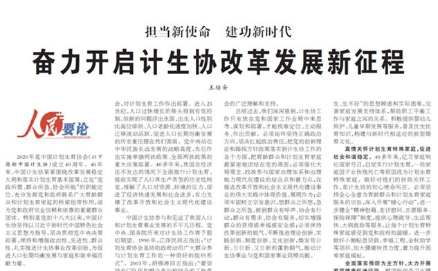 [本文來源:人民日報2020年5月18日第9版;作者:全國政協(xié)人口資源環(huán)境委員會副主任,中國計劃生育協(xié)會黨組書記、常務(wù)副會長——王培安]