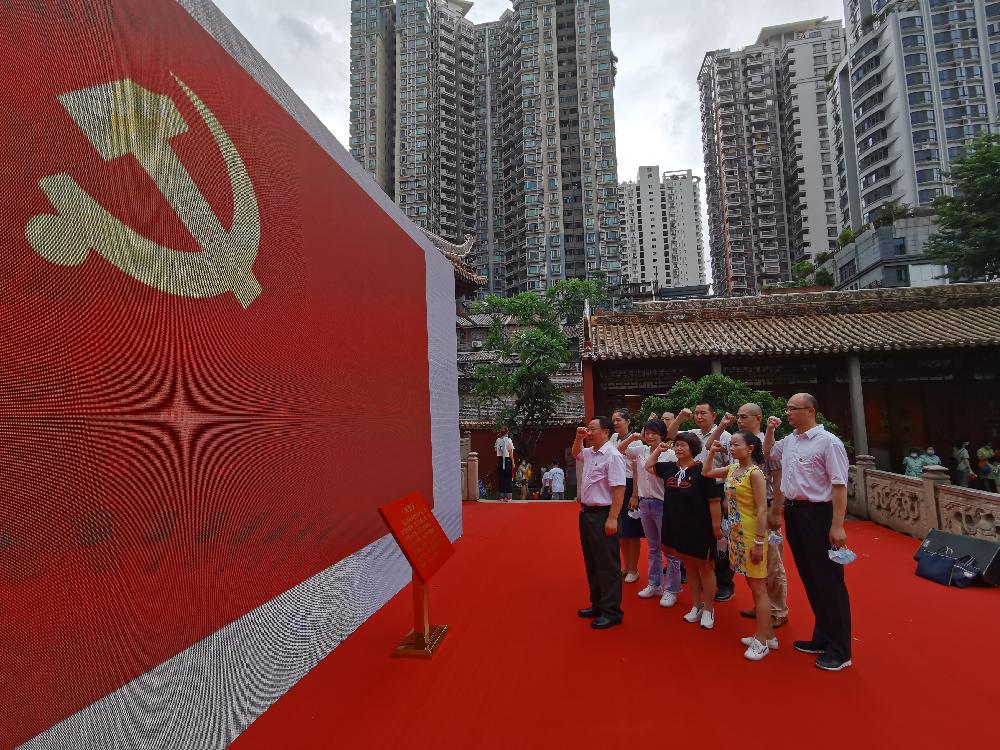為慶祝中國共產(chǎn)黨成立99周年,強(qiáng)化廣大黨員的宗旨意識,7月1日下午,廣州市計(jì)生協(xié)黨支部一行9人到廣州農(nóng)民運(yùn)動講習(xí)所舊址紀(jì)念館開展了慶祝中國共產(chǎn)黨成立99周年暨“抗疫情、勇?lián)?dāng)、爭先鋒”主題黨日活動。“我志愿加入中國共產(chǎn)黨、、、、、、”,在支部書記李益平的帶領(lǐng)下,全體共產(chǎn)黨員面對鮮紅的黨旗,高舉右拳,神情莊重,重溫了入黨誓詞,全體黨員干部用錚錚誓言表達(dá)了對黨無限忠誠的堅(jiān)定信念。