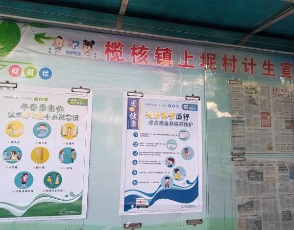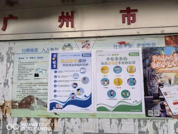 在計生宣傳欄張貼《廣州衛(wèi)生健康》宣傳疫情防控知識
