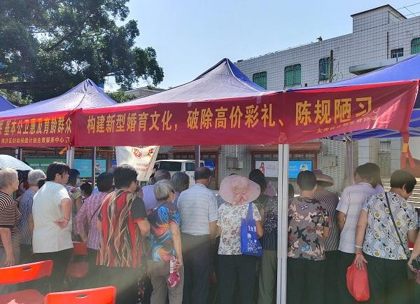 ??活動現(xiàn)場設(shè)置有政策咨詢、知識宣傳、義診服務(wù)等攤位,工作人員通過懸掛橫幅、發(fā)放婚育新風(fēng)倡議書、政策解讀、健康咨詢等方式,向來往群眾講解地貧防治、優(yōu)化生育政策、婚育新風(fēng)、優(yōu)生優(yōu)育、家庭健康等知識,引導(dǎo)會員群眾爭做新型婚育文化和健康家風(fēng)的宣傳者、踐行者、引領(lǐng)者,讓婚育新風(fēng)走進千家萬戶;潭洲社區(qū)衛(wèi)生服務(wù)中心的醫(yī)生們?yōu)槿罕娫敿毥獯鹆顺錾毕莘揽?、孕前?yōu)生、產(chǎn)前篩查、兒童保健等方面的問題,并義務(wù)為群眾免費測量血壓,對血壓異常人員進行飲食指導(dǎo)、用藥安全提醒等?;顒永塾嫿哟罕娮稍?00余人次,發(fā)放各類宣傳折頁及相關(guān)資料500余份。