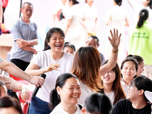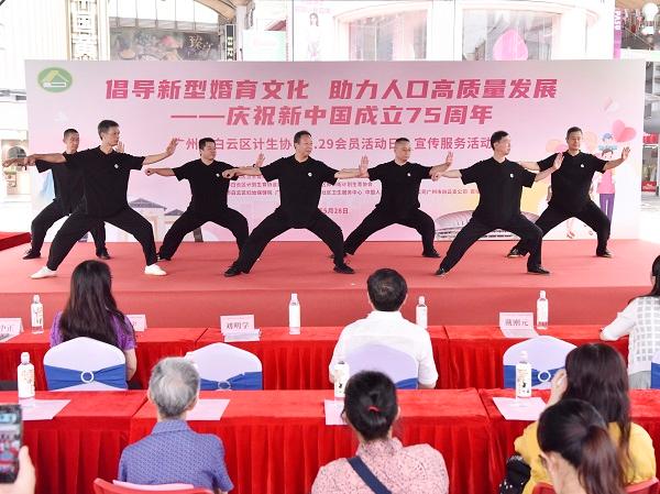 “咚鏘、咚鏘、咚咚鏘……”隨著一陣金鼓齊鳴,本次活動(dòng)在精彩的醒獅表演中拉開(kāi)序幕。隨后《陳氏太極拳》、健身工間操《上春山》、旗袍走秀《旗袍扇韻》、獨(dú)唱《我和我的祖國(guó)》等節(jié)目輪番上陣,進(jìn)一步弘揚(yáng)新時(shí)代文明新風(fēng),倡導(dǎo)新型婚育文化。太極拳愛(ài)好者們緩緩起勢(shì),在一張一弛之間,展示出太極剛?cè)嶂馈?lái)自白云區(qū)婦幼保健院的職工們,利用工間操時(shí)間,將工間操和歌曲《上春山》巧妙結(jié)合,優(yōu)美的旋律、動(dòng)感的節(jié)奏為現(xiàn)場(chǎng)帶來(lái)了無(wú)限的活力……現(xiàn)場(chǎng)歡聲笑語(yǔ),觀眾掌聲陣陣。其間,主持人還不忘與臺(tái)下觀眾互動(dòng),把優(yōu)生優(yōu)育政策穿插其中,觀眾反應(yīng)快、熱情高,躍躍欲試、高潮迭起。