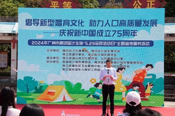 為慶祝新中國成立75周年暨計(jì)生協(xié)第26個(gè)“5·29會員活動日”,5月29日下午,南沙區(qū)計(jì)生協(xié)在珠江文化廣場開展了“倡導(dǎo)新型婚育文化 助力人口高質(zhì)量發(fā)展”主題宣傳服務(wù)活動。區(qū)衛(wèi)生健康局局長、區(qū)計(jì)生協(xié)常務(wù)副會長劉韜出席活動并致辭,珠江街道辦分管計(jì)生協(xié)領(lǐng)導(dǎo)、各街(鎮(zhèn))計(jì)生協(xié)秘書長和工作人員、計(jì)生特殊家庭代表等參加了活動。