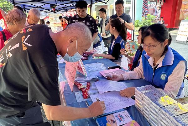 活動(dòng)現(xiàn)場(chǎng),精心布置的多個(gè)攤位吸引了眾多群眾駐足。計(jì)生協(xié)、公衛(wèi)委攤位緊密圍繞群眾對(duì)優(yōu)生優(yōu)育需求,派發(fā)宣傳折頁(yè)、宣傳品、避孕藥具等,深入宣傳預(yù)防出生缺陷的惠民政策,增強(qiáng)居民對(duì)優(yōu)化生育政策的了解,為構(gòu)建生育友好社會(huì)注入新活力。貼心的體檢服務(wù)是活動(dòng)現(xiàn)場(chǎng)的一大亮點(diǎn)。雖然細(xì)雨飄灑,但義診攤位前依然排滿了等待檢查的居民?!跋Md華街社區(qū)衛(wèi)生服務(wù)中心和燕塘衛(wèi)生服務(wù)站經(jīng)常舉辦這類社區(qū)活動(dòng),一出門(mén)就能做體檢,實(shí)在是太方便了!”許多居民紛紛點(diǎn)贊。