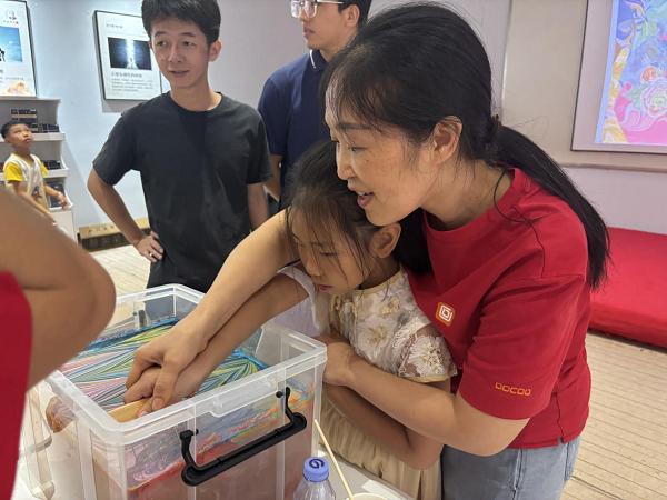 在非遺體驗區(qū),水拓技藝傳承人悉心指導親子家庭調配顏料、掌握拓印技巧。職工與子女共同創(chuàng)作親子帽,融入婚育文化元素,書寫家庭格言,將婚育新風理念凝于指尖、繪于帽上?;顒油瑫r啟動了暑假出行計劃,鼓勵家庭佩戴自制帽子打卡游覽,后續(xù)將評選“最美婚育文化傳播家庭”,持續(xù)擴大宣傳影響力。
