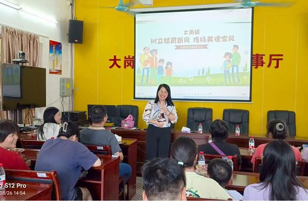 為深化家風(fēng)家教建設(shè),傳承中華優(yōu)秀婚姻家庭文化,弘揚(yáng)社會(huì)主義家庭文明新風(fēng)尚,8月26日下午,南沙區(qū)大崗鎮(zhèn)計(jì)劃生育協(xié)會(huì)組織舉辦了以“樹立婚育新風(fēng),傳揚(yáng)美德家風(fēng)”為主題的宣傳講座。活動(dòng)特邀南沙區(qū)高級(jí)婚姻家庭咨詢師吳秋紅擔(dān)任主講。