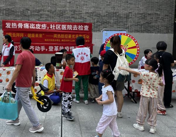 現(xiàn)場設(shè)置多個功能區(qū),以健康宣教為核心。義診咨詢點由專業(yè)醫(yī)務(wù)人員為居民提供健康篩查與咨詢,圍繞“兩熱”防控,細(xì)致講解蚊蟲防治、居家清潔及個人防護(hù)知識,幫助居民從日常生活細(xì)節(jié)阻斷疾病傳播。互動展示區(qū)則通過趣味問答、猜謎等形式,生動傳遞防控知識。