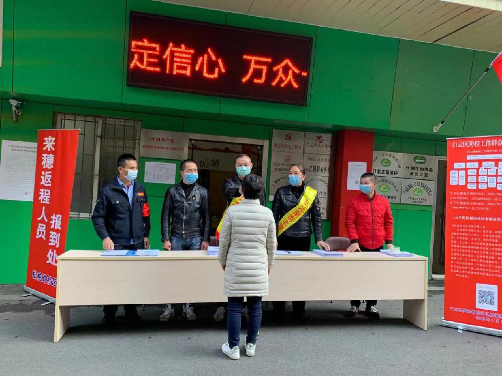 △圖3.白云區(qū)三元里街荊楚印刷流動(dòng)人口計(jì)生協(xié)為來穗返程人員設(shè)置報(bào)到處,加強(qiáng)對(duì)返穗人員的檢查登記。