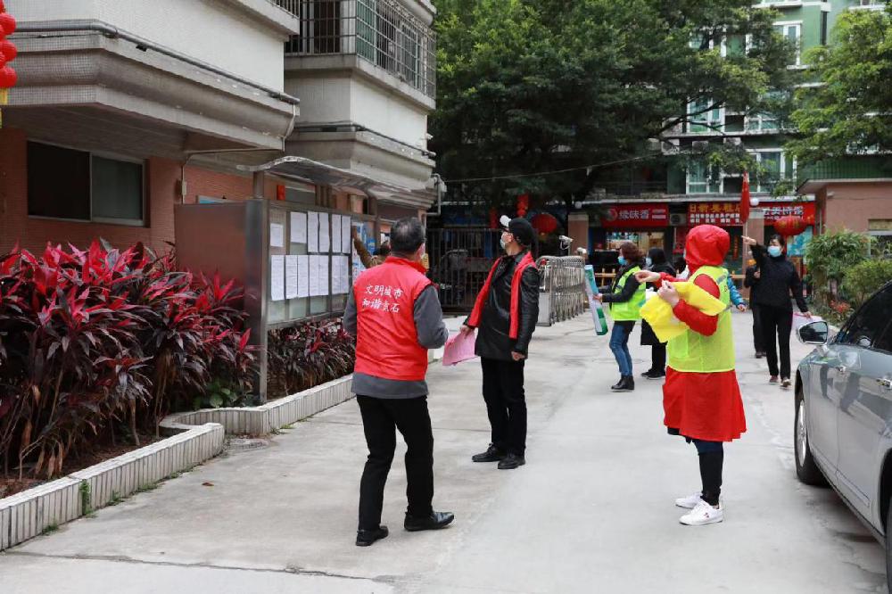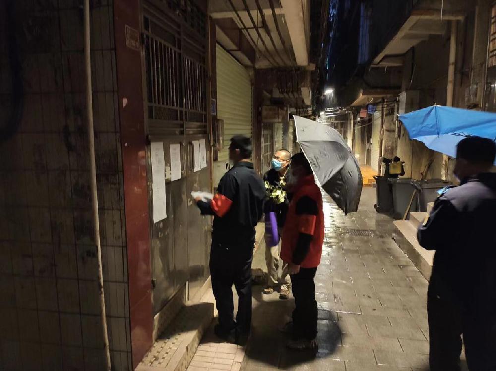 △圖6.白云區(qū)松洲街計(jì)生協(xié)工作人員帶隊(duì)到某小區(qū)進(jìn)行登門排查工作。