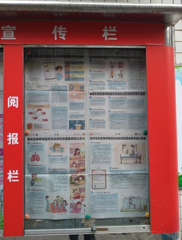 線下,每周一及時更新街道的10個衛(wèi)計健康宣傳欄和健康教育宣傳欄,張貼最新一期廣東衛(wèi)生健康報。圍蔽管理小區(qū),每個出入口設(shè)立宣傳點為居民出入進行測溫和宣傳防疫知識。