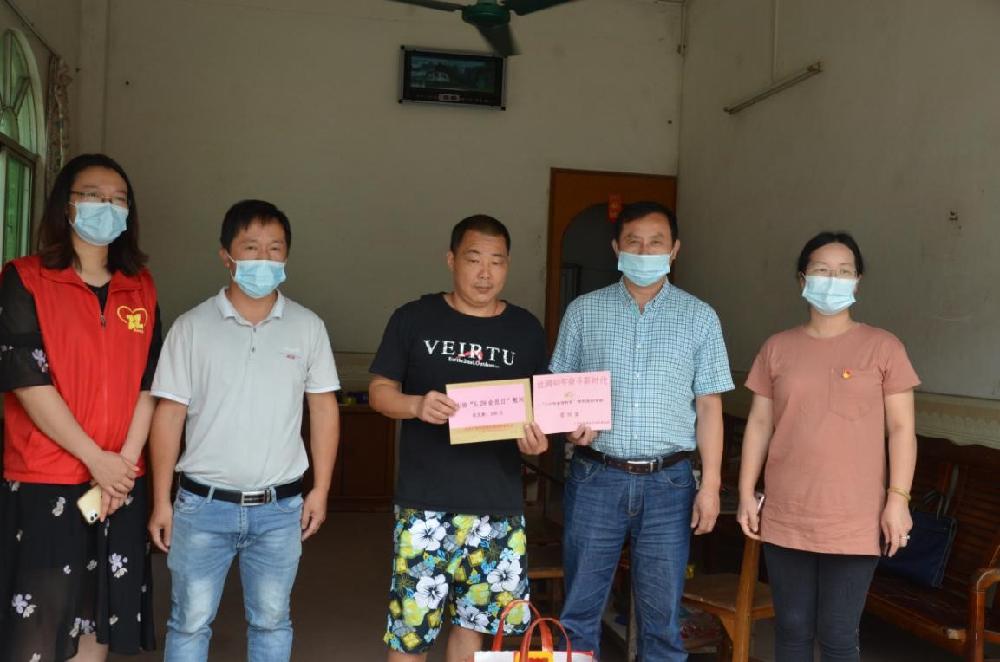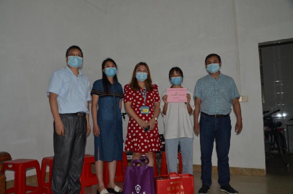 圖為:花都區(qū)計(jì)生協(xié)和梯面鎮(zhèn)計(jì)生協(xié)為患重大疾病計(jì)生困難家庭送上特別扶助慰問金和慰問品