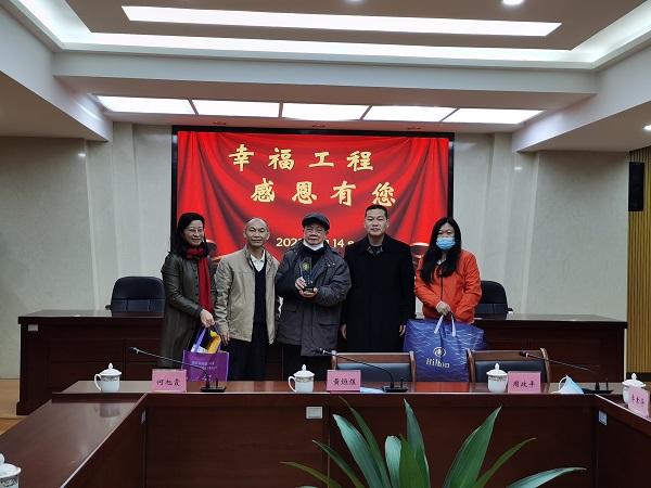 ??座談會后,慰問組一行在黃埔街為82歲的老黨員徐名塵老人送上由幸福工程廣州市組委會頒發(fā)的獎牌。黃烜煜介紹了徐老先生為“幸福工程”慷慨捐款1.9萬元的優(yōu)秀事跡,號召大家向徐名塵老人學(xué)習(xí),為救助困境母親奉獻自己的一份愛心。周政平也表達了對徐老的敬意,為徐老送上新春的祝福及慰問品。