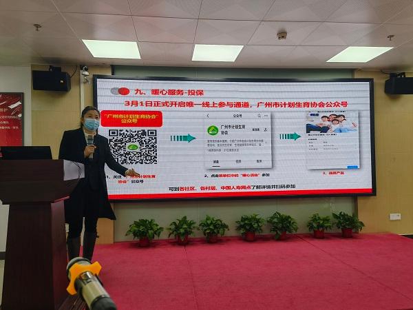 會議首先由白云區(qū)計生協(xié)辦公室主任趙雪霏總結(jié)2021年度協(xié)會工作情況,布置了2022年工作任務(wù)。中國人壽保險公司白云支公司總經(jīng)理梁文致辭,副總經(jīng)理謝艷對“暖心行動”計生保險業(yè)務(wù)進行培訓(xùn)。最后,白云區(qū)衛(wèi)生健康局三級調(diào)研員譚海濱作總結(jié)發(fā)言,對鎮(zhèn)街提出三點要求:一是強化組織領(lǐng)導(dǎo),工作落實到位;二是強化服務(wù)意識,努力做到群眾滿意;三是強化合作機制,做到無縫對接。