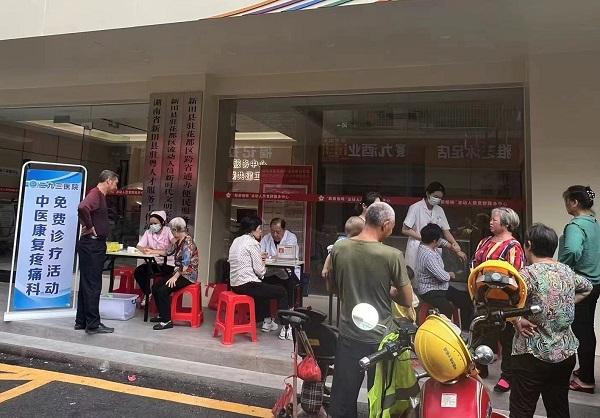 ??在義診區(qū),新田流動(dòng)人口計(jì)生協(xié)下轄的新連心志愿隊(duì)白色分隊(duì)—二九三醫(yī)院的醫(yī)務(wù)志愿者熱情接待參加活動(dòng)的市民群眾,仔細(xì)詢問他們的身體情況,耐心解答他們提出的問題,根據(jù)患者病情給予專業(yè)意見和健康指導(dǎo),并為他們免費(fèi)提供量血壓、測(cè)血糖和推拿、艾灸、針灸等服務(wù)。