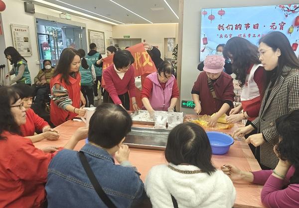 活動現(xiàn)場,計生協(xié)志愿者詳細(xì)介紹了元宵節(jié)的來源、各地傳統(tǒng)風(fēng)俗,并通過知識問答環(huán)節(jié),讓大家對元宵節(jié)有了更深入的了解,現(xiàn)場志愿者們還一對一指導(dǎo)學(xué)員制作湯圓。在計生協(xié)志愿者和社區(qū)衛(wèi)生服務(wù)中心工作人員的帶領(lǐng)下,大家還以志愿者的身份為社區(qū)衛(wèi)生中心住院部行動不便的老人及殘疾人送湯圓,親手獻(xiàn)出了一份愛心。