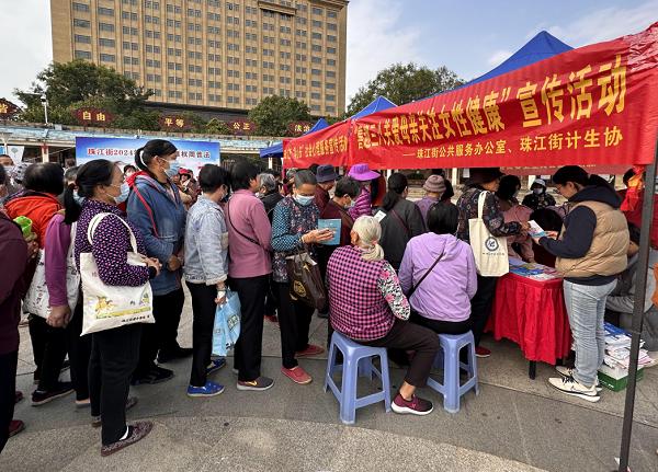 宣傳系列活動(dòng)中,街道多部門聯(lián)合開展社區(qū)攤位宣傳,針對(duì)重點(diǎn)疾病及女性不同生命周期所面臨的突出健康問題,為社區(qū)女性派發(fā)健康科普讀物和科普資料,科學(xué)普及衛(wèi)生保健、科學(xué)育兒、健康養(yǎng)護(hù)、科學(xué)健身等,開展家庭營(yíng)養(yǎng)和膳食合理搭配宣教活動(dòng)、“心理健康素養(yǎng)十條”宣傳、“兩癌”防治知識(shí)宣傳?;顒?dòng)現(xiàn)場(chǎng)通過知識(shí)問答、社區(qū)送診等方式,活躍現(xiàn)場(chǎng)宣傳氛圍,將血壓測(cè)量、血糖檢測(cè)、全科問診、八段錦健康養(yǎng)生保健操現(xiàn)場(chǎng)教學(xué)等服務(wù)送到群眾“家門口”,引導(dǎo)婦女關(guān)愛個(gè)人健康,珍惜生命。
