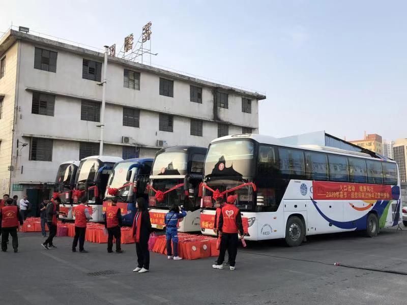 當(dāng)天上午,花都區(qū)計(jì)劃生育協(xié)會(huì)聯(lián)合新華街計(jì)生協(xié)會(huì)、湖南省新田縣駐花都區(qū)流動(dòng)計(jì)生協(xié)會(huì)、廣東中運(yùn)傳媒科技股份有限公司等單位組織湖南省新田籍500名外出務(wù)工人員免費(fèi)坐10臺(tái)大巴車(chē)回湖南新田老家過(guò)年。