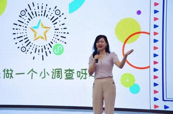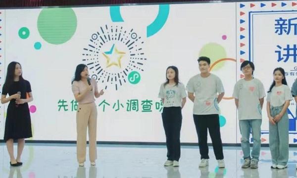 廣東藥科大學(xué)校團(tuán)委老師、GDPU青春健康同伴社指導(dǎo)老師——曾華老師上臺問候同學(xué)們,向新生們介紹了青春健康項(xiàng)目并強(qiáng)調(diào)了其重要性。