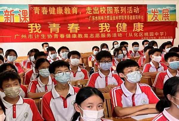 ??7月8日上午,從化區(qū)計(jì)生協(xié)聯(lián)合溫泉鎮(zhèn)計(jì)生協(xié)在從化區(qū)桃園中學(xué)開展青春健康教育志愿服務(wù)活動(dòng),活動(dòng)邀請廣東水利電力職業(yè)技術(shù)學(xué)院青春健康同伴教育的講師授課,圍繞青春期身體變化及困惑、青春期衛(wèi)生保健和人際交往等課程內(nèi)容開展了一場生動(dòng)的青春健康教育講座,共有80名初中一年級同學(xué)參加。