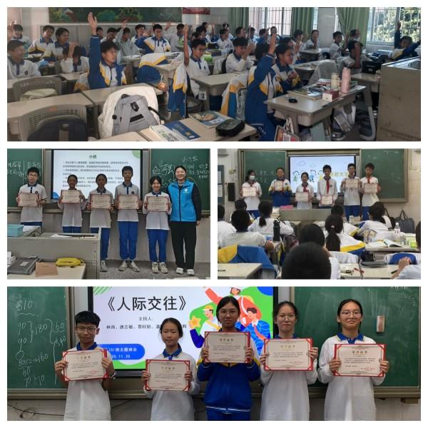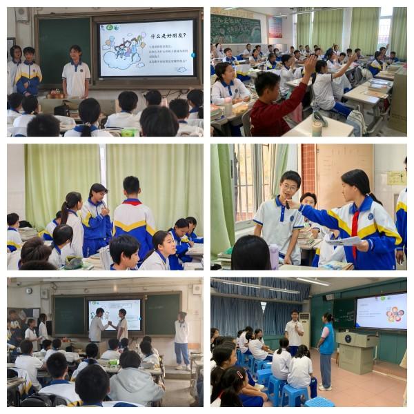 主題班會(huì)現(xiàn)場(chǎng)氣氛活躍。25名經(jīng)培訓(xùn)的學(xué)生骨干分為小組,帶領(lǐng)八年級(jí)5個(gè)班共200名學(xué)生展開互動(dòng)。同學(xué)們?cè)凇昂门笥旬嬒瘛被顒?dòng)中分享彼此閃光點(diǎn),在“應(yīng)對(duì)同伴壓力”討論中交流實(shí)用妙招。課堂不僅充滿溫馨分享,也涌動(dòng)思維碰撞,有效促進(jìn)了同學(xué)間的理解與信任,提升了集體凝聚力與個(gè)人表達(dá)信心。