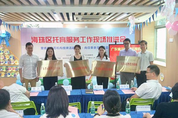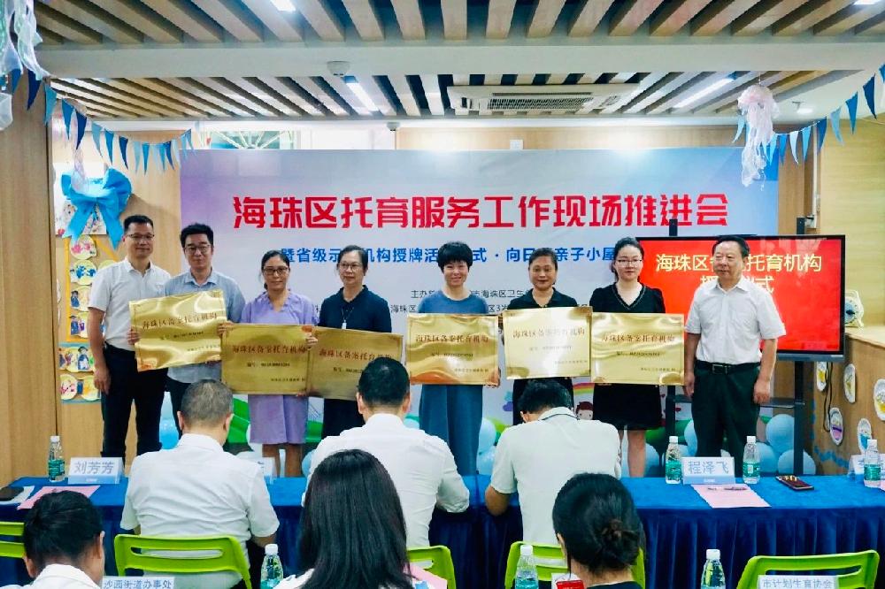 現(xiàn)場(chǎng)會(huì)上,各級(jí)領(lǐng)導(dǎo)分別為海珠區(qū)4家“廣東省示范性托育機(jī)構(gòu)”、3家“海珠區(qū)普惠托育試點(diǎn)機(jī)構(gòu)”、20家備案托育機(jī)構(gòu)進(jìn)行了授牌,并舉行了“向日葵親子小屋”項(xiàng)目啟動(dòng)儀式。