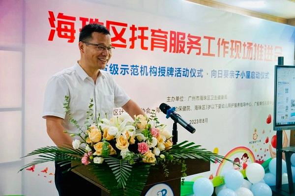 8月22日上午,海珠區(qū)組織召開(kāi)托育服務(wù)工作現(xiàn)場(chǎng)推進(jìn)會(huì),海珠區(qū)人民政府副區(qū)長(zhǎng)蘇明慶出席并講話,廣東省衛(wèi)生健康委人口家庭處副處長(zhǎng)高叢林、廣州市衛(wèi)生健康委家庭發(fā)展處副處長(zhǎng)程澤飛、廣州市計(jì)劃生育協(xié)會(huì)秘書長(zhǎng)李益平等同志出席活動(dòng)。