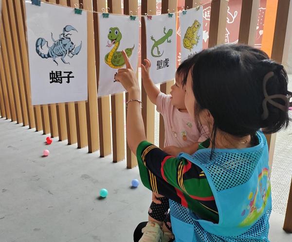 活動結(jié)合端午節(jié)“射五毒”習(xí)俗,開展了“看看誰的龍舟快”“躲避龍舟雨”“模擬包粽子”“驅(qū)逐五毒”等端午系列親子競技小游戲,讓幼兒更直觀地了解端午節(jié)傳統(tǒng)文化和習(xí)俗,感受濃厚的端午節(jié)日氛圍。每個親子家庭都團結(jié)協(xié)作、其樂融融,現(xiàn)場一片歡聲笑語。