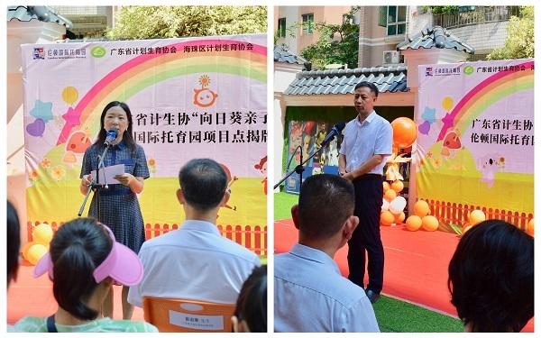 7月25日上午,廣東省計(jì)生協(xié)“向日葵親子小屋”海珠區(qū)倫頓國際托育園項(xiàng)目點(diǎn)舉行揭牌儀式,省計(jì)生協(xié)、市計(jì)生協(xié)和海珠區(qū)衛(wèi)生健康局、計(jì)生協(xié)、新港街道等相關(guān)單位領(lǐng)導(dǎo),以及博雅教育集團(tuán)海珠校區(qū)負(fù)責(zé)人、倫頓托育園向日葵親子指導(dǎo)員、新港街道0-3歲嬰幼兒家庭代表出席活動。作為計(jì)生協(xié)深入開展“優(yōu)生優(yōu)育進(jìn)萬家”活動設(shè)立的公益項(xiàng)目,今年海珠區(qū)共打造4個“向日葵親子小屋”,包含1個省級、1個市級以及2個區(qū)級。