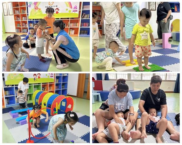 課堂內(nèi)容緊緊圍繞大運動、語言、認知、睡眠、安全、情感和社會性、營養(yǎng)與衛(wèi)生習慣等七大主題展開,通過課前律動、知識講解、游戲互動、繪本共讀、小兒推拿、積極心理學等形式,開展0-3歲嬰幼兒早期發(fā)展服務活動和家庭指導。其中,繪本共讀與游戲互動環(huán)節(jié)最受家長和孩子們喜愛。