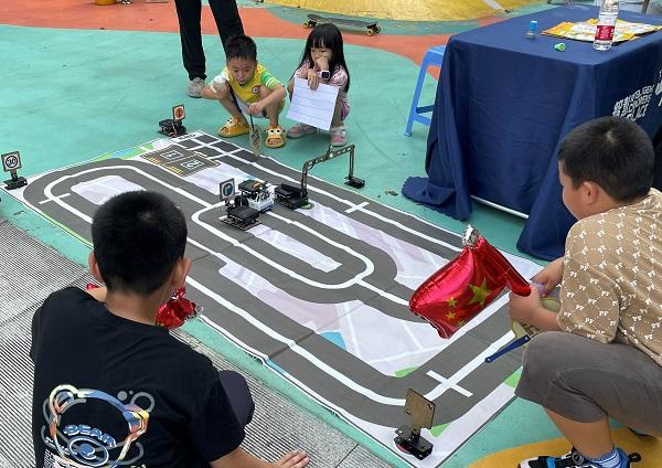 活動攤位豐富多樣,包括智能編程科普、科學育兒科普、心理游戲體檢、顏色游戲體驗等,每個攤位都設有互動體驗環(huán)節(jié)。不少兒童對智能編程科普十分感興趣,在工作人員引導下,嘗試將無人駕駛小汽車由起點避開障礙物開到終點,有兒童嘗試了一次又一次,從中學習編程知識,提高思維能力。不少家長參與了科學育兒科普攤位的互動體驗,隨機抽取育兒情境題目進行回答,在情境中學習了兒童發(fā)展特點和育兒技巧等知識。