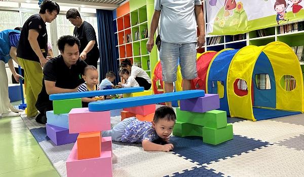 ??運(yùn)動(dòng)游戲是孩子們最喜歡的環(huán)節(jié)。孩子們?cè)诩议L(zhǎng)和親子指導(dǎo)員的陪伴下,通過(guò)各種游戲活動(dòng),鍛煉了爬行能力、行走能力、平衡能力、肌肉耐力、身體協(xié)調(diào)性、空間感知能力等等,孩子們的體能都在這個(gè)環(huán)節(jié)得到很好地鍛煉,進(jìn)一步培養(yǎng)規(guī)則意識(shí)。運(yùn)動(dòng)游戲不僅有助于孩子們的身心發(fā)展,也增進(jìn)了家長(zhǎng)與孩子之間的情感交流。很多家長(zhǎng)也通過(guò)運(yùn)動(dòng)游戲環(huán)節(jié)發(fā)現(xiàn)自己孩子勇于挑戰(zhàn)、認(rèn)真投入的一面。