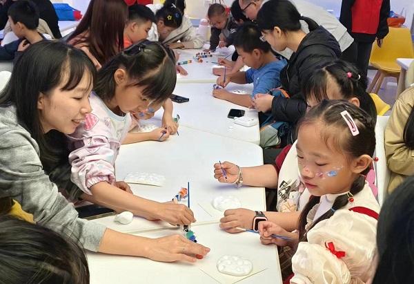 活動現(xiàn)場,社工指導(dǎo)孩子們在臉上繪制星球彩繪,化身為“小小宇航員”,為即將開始的探索之旅增添了無限樂趣。在專業(yè)解說員帶領(lǐng)下,孩子們通過“穿梭宇宙科普導(dǎo)覽”迅速領(lǐng)略全館精彩內(nèi)容,激發(fā)他們深入探索的欲望。在太陽系大揭秘主題講解區(qū),孩子們仿佛置身于浩瀚宇宙之中,通過生動講解和互動體驗,深入了解了太陽系中各大行星特點與奧秘。在科普小課堂及手工制作環(huán)節(jié),孩子們親手制作了自己理解中的月球或火山模型,展現(xiàn)出他們對色彩的大膽運用和創(chuàng)意碰撞,讓孩子們在學(xué)習(xí)宇宙知識的同時,加深了對科學(xué)的理解。