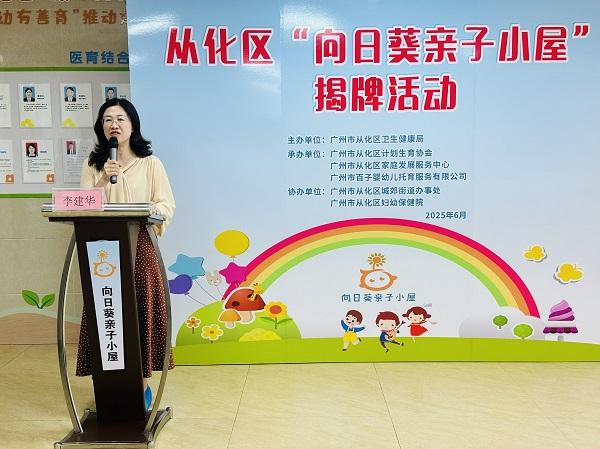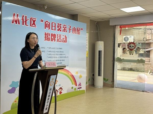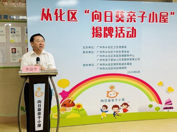 6月24日下午,從化區(qū)首家“向日葵親子小屋”在區(qū)綜合托育服務(wù)中心正式揭牌。廣州市計生協(xié)、從化區(qū)衛(wèi)健局、城郊街道辦事處、區(qū)計生協(xié)、區(qū)婦聯(lián)、區(qū)婦幼保健院等相關(guān)單位領(lǐng)導(dǎo)共同為小屋揭牌。金色的牌匾在陽光下熠熠生輝,標志著項目正式揚帆起航,也承載著對嬰幼兒健康快樂成長的美好祝愿。
