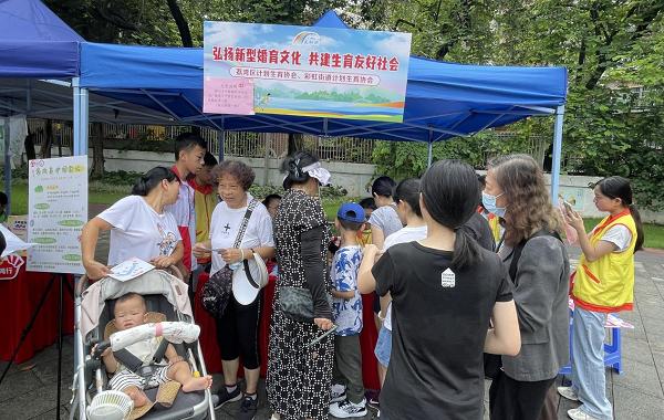 活動(dòng)現(xiàn)場,彩虹文化廣場作為主會(huì)場,不僅有精彩的文藝表演,舞臺(tái)下的攤位區(qū)域也熱鬧非凡。在分會(huì)場石桂里廣場,優(yōu)化生育政策宣傳活動(dòng)同步開展。工作人員設(shè)置專門攤位,通過游戲互動(dòng)、知識講解等形式,向居民普及優(yōu)化生育相關(guān)知識與政策。現(xiàn)場發(fā)放宣傳資料,內(nèi)容涵蓋生育政策、優(yōu)生優(yōu)育知識等。同時(shí),現(xiàn)場設(shè)有拍照打卡點(diǎn),將優(yōu)化生育宣傳與趣味互動(dòng)相結(jié)合,吸引居民拍照留念并自發(fā)分享至社交平臺(tái),有效擴(kuò)大了政策宣傳覆蓋面。