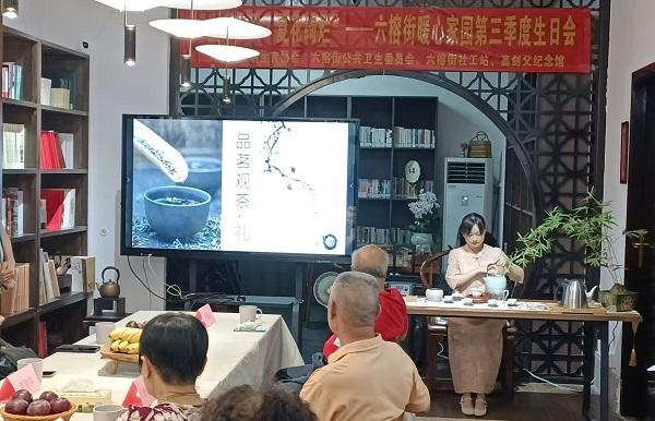 高劍父紀(jì)念館的茶藝師黃老師為長(zhǎng)者們帶來(lái)了一場(chǎng)視覺(jué)與味覺(jué)的盛宴。在茶香飄逸中,長(zhǎng)者們學(xué)習(xí)了泡茶的技藝,體驗(yàn)了品茗的雅趣,感受了中國(guó)茶文化的深厚底蘊(yùn)。隨后,志愿者的奉茶禮更是將這份敬意和祝福傳遞給了每一位長(zhǎng)者。