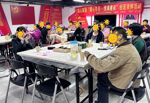 ??12月20日,建設(shè)街計(jì)生協(xié)、公衛(wèi)委、公服辦聯(lián)合街道“雙百工程”社工站開(kāi)展“暖心冬至·情滿建設(shè)”社區(qū)關(guān)懷活動(dòng),將黨和政府關(guān)心關(guān)愛(ài)落到實(shí)處,促進(jìn)計(jì)生特殊家庭成員之間互動(dòng)交流,提升社區(qū)居民歸屬感和幸福感,累計(jì)服務(wù)40人次。