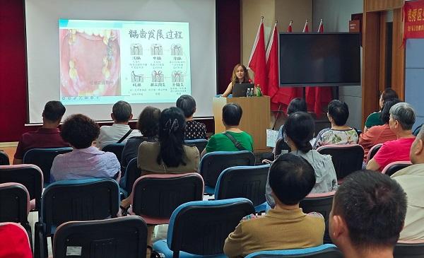 4月29日上午,越秀區(qū)婦幼保健院口腔科白爾娜·吾守爾主治醫(yī)生以“一口好牙,吃出健康”為切入點(diǎn),強(qiáng)調(diào)了口腔健康與全身健康的緊密關(guān)聯(lián)?,F(xiàn)場通過視頻演示,糾正了“橫刷牙齒”“長期使用硬毛牙刷”等常見誤區(qū),并詳細(xì)講解了常見口腔疾病齲齒“蟲牙”及牙周炎等不同階段發(fā)展和預(yù)防要點(diǎn)。居民們聽得津津有味,紛紛表示受益匪淺。