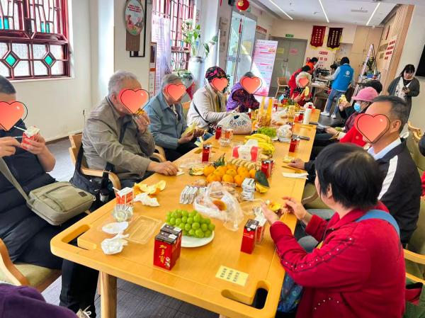 游戲結(jié)束后,工作人員早已備好水果、點(diǎn)心與熱飲。大家圍坐暢談,分享生活日常,交流近況心得。工作人員悉心傾聽需求,并叮囑冬季防寒注意事項(xiàng),親切的互動(dòng)進(jìn)一步拉近了彼此距離。