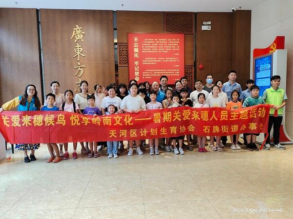 廣大來穗人員在推進(jìn)廣州新時(shí)代發(fā)展中貢獻(xiàn)了重要力量,由此形成一批過著開學(xué)留守、寒暑假隨遷的“候鳥式”生活的兒童隊(duì)伍。為了讓來穗兒童度過平安、快樂、有意義的假期,8月22日,天河區(qū)計(jì)劃生育協(xié)會(huì)聯(lián)合石牌街道辦事處在廣東省方志館開展“關(guān)愛來穗候鳥 悅享嶺南文化”——暑期關(guān)愛來穗人員主題活動(dòng),為石牌來穗兒童的暑假畫上圓滿句號(hào)。