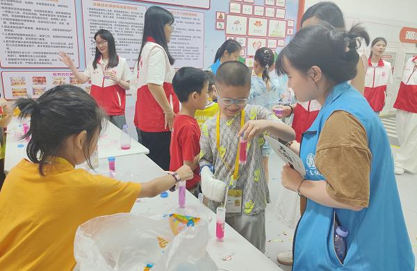 啟動(dòng)儀式后,首個(gè)吉事學(xué)堂課程正式開(kāi)課,華南師范大學(xué)華南先進(jìn)光電子研究院的高校志愿者帶領(lǐng)社區(qū)兒童用實(shí)驗(yàn)探索化學(xué)的神奇,啟蒙他們對(duì)化學(xué)科學(xué)的認(rèn)識(shí)和理解。