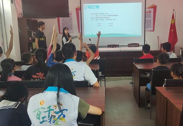 為深入推進(jìn)青春健康行動(dòng),提高赤坭鎮(zhèn)青少年和暑期來穗“小候鳥”的“識(shí)毒、防毒、拒毒”意識(shí),7月17日上午,赤坭鎮(zhèn)計(jì)生協(xié)、公衛(wèi)委聯(lián)合鎮(zhèn)綜治辦禁毒組、廣東培正學(xué)院會(huì)計(jì)學(xué)院“曙光”志愿服務(wù)實(shí)踐團(tuán)在錦山村開展了“我青春 我健康”青春健康教育志愿服務(wù)活動(dòng)暨“關(guān)愛候鳥,禁毒同行”宣傳講座。