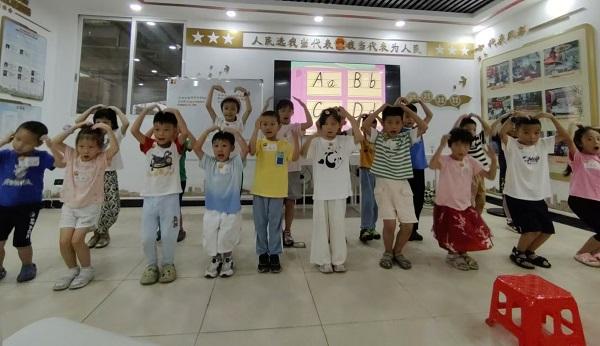 為了讓學(xué)習(xí)更加生動有趣,老師巧妙地設(shè)計了字母操環(huán)節(jié)?!靶『蝤B”們跟隨著老師的節(jié)奏搖擺身體,用身體演繹出每一個字母的形狀,這種身體記憶法不僅讓“小候鳥”們在運動中感受到快樂,也讓字母的輪廓深深烙印在他們的腦海中。每一次舉手投足間,都是對知識的又一次鞏固和深化。
