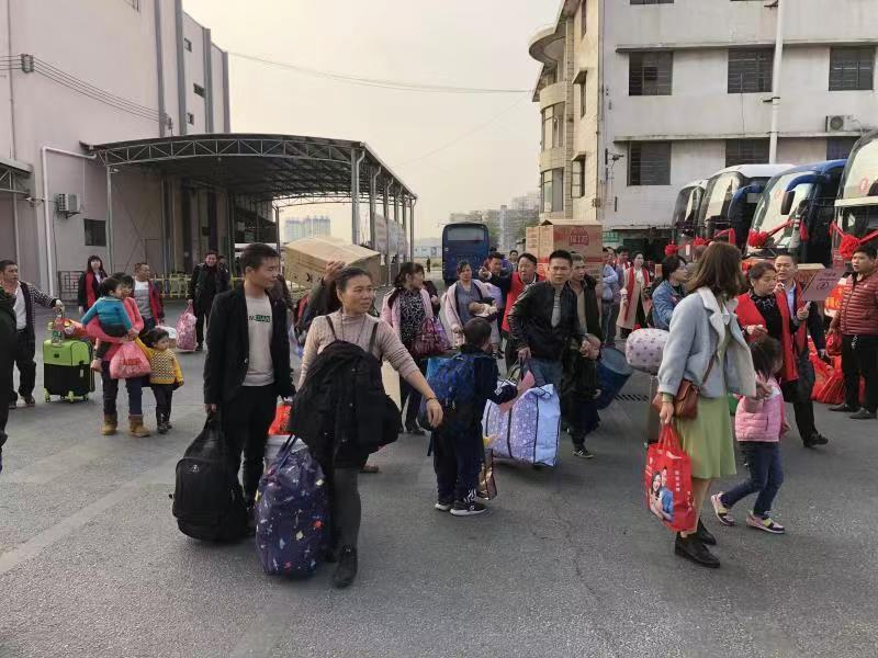 當天上午,花都區(qū)計劃生育協(xié)會聯(lián)合新華街計生協(xié)會、湖南省新田縣駐花都區(qū)流動計生協(xié)會、廣東中運傳媒科技股份有限公司等單位組織湖南省新田籍500名外出務工人員免費坐10臺大巴車回湖南新田老家過年。