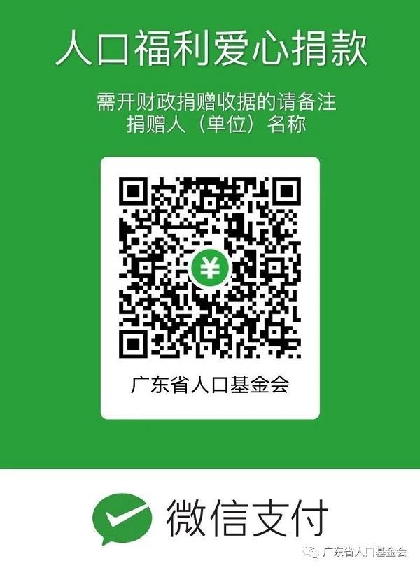 ??請愛心單位或個人直接掃描廣東省人口基金會微信捐款二維碼(見附件)進(jìn)行捐贈,或者關(guān)注廣東省人口基金會微信公眾號,點(diǎn)擊“項目捐款”—“掃碼捐款”支付。如納入各地級市計生協(xié)統(tǒng)計的捐款,請各地市計生協(xié)統(tǒng)一收齊后掃描捐贈并在備注欄注明捐款人姓名及所屬市、縣(區(qū)),以便開具財政捐贈收據(jù)和統(tǒng)計返撥經(jīng)費(fèi)。